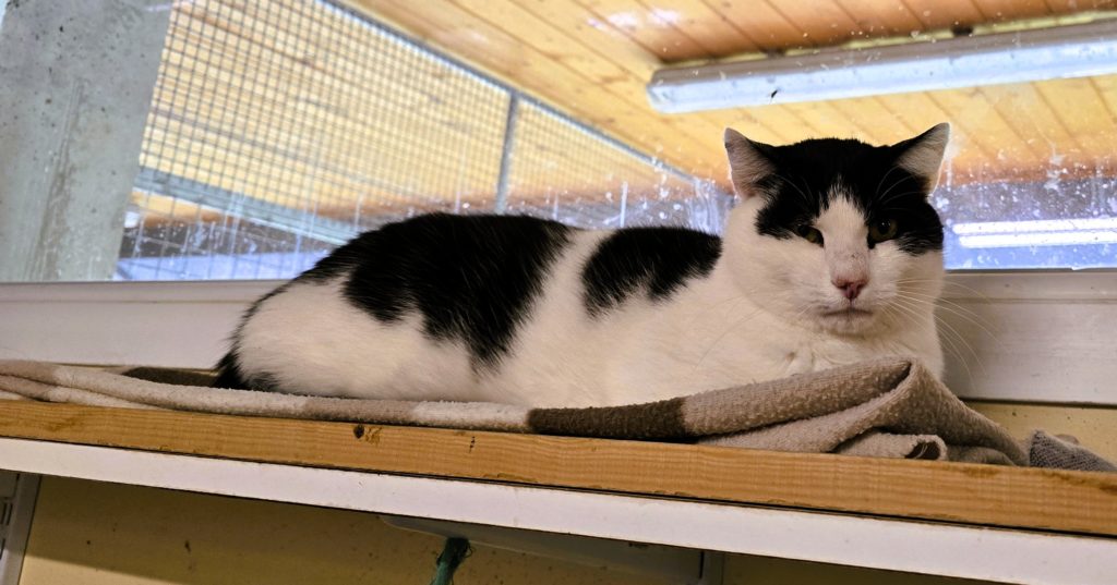 SHAGGY 30 septembre 2025 mâle noir et blanc Né en 2021 Shaggy est adorable et aime les câlins une fois la confiance posée. D *** ***